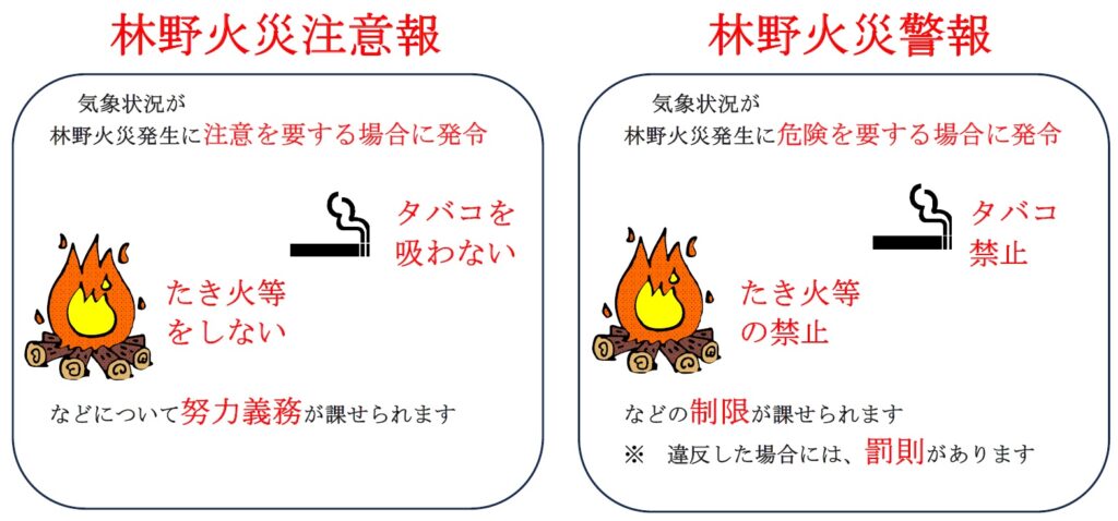 ※ 詳細は以下の「林野火災注意報・林野火災警報」をご覧ください。